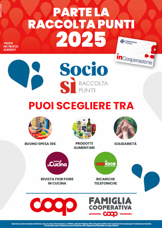 L’offerta è riservata ai soci e ai clienti delle Casse Rurali Trentine e ai soci delle Famiglie Cooperative del consorzio SAIT con Carta In Cooperazione aderenti all’iniziativa. Se non lo sei, è facile diventarlo.
